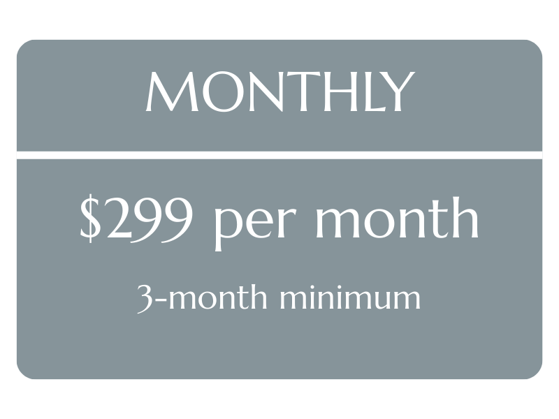 1:1 coaching is fully customized - so I’ll work with what you’ve got.